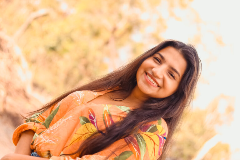 Ensaio de Jacy Almeida. Uma tarde tranquila, banhada por tons dourados do entardecer, se torna especial com o surgimento de um sorriso sincero — leve, espontâneo e cheio de beleza — como se o próprio tempo tivesse parado para admirá-lo.